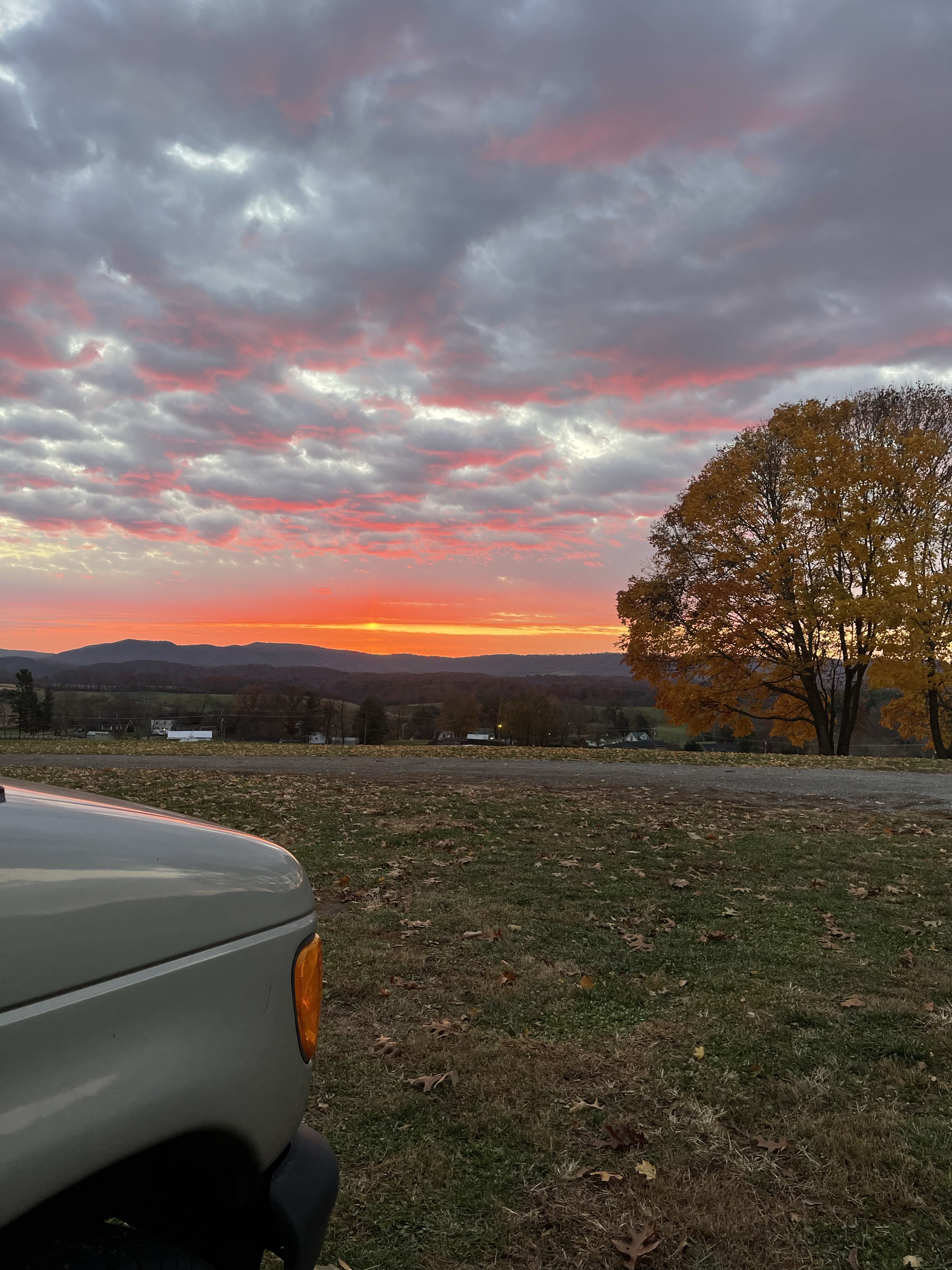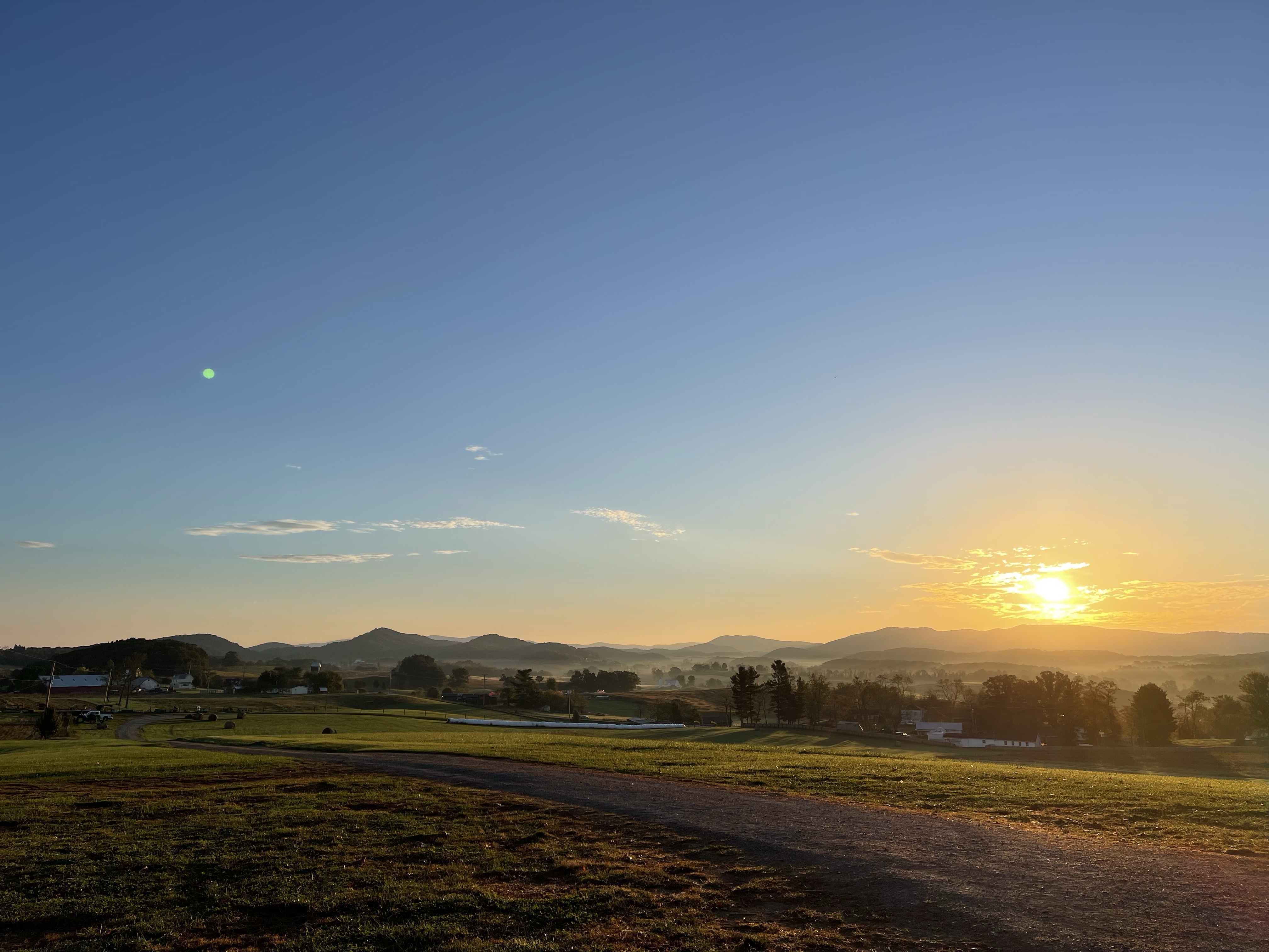 I arrived at the farm after 10 pm. After calling the farmer to find out where I should park and access the buildings, I went to bed. The following day welcomed me with a colorful sunrise–I realized the farm was on a hill overlooking a small valley and a small mountain range in the distance. This would be the first of near-daily beautiful sunrises.